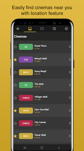 - Adicione cinemas aos favoritos. Seus cinemas favoritos serão exibidos no topo em listagens.